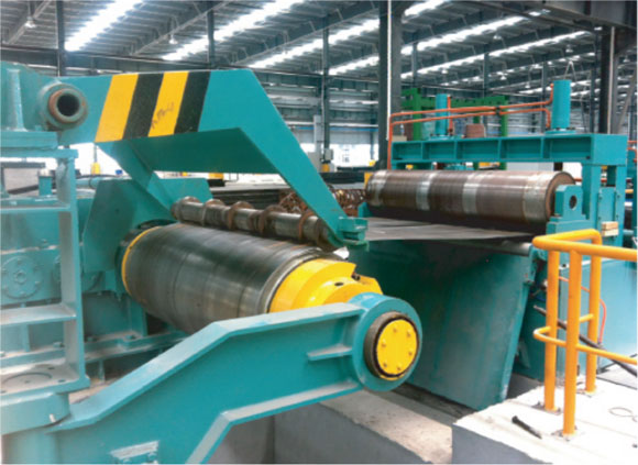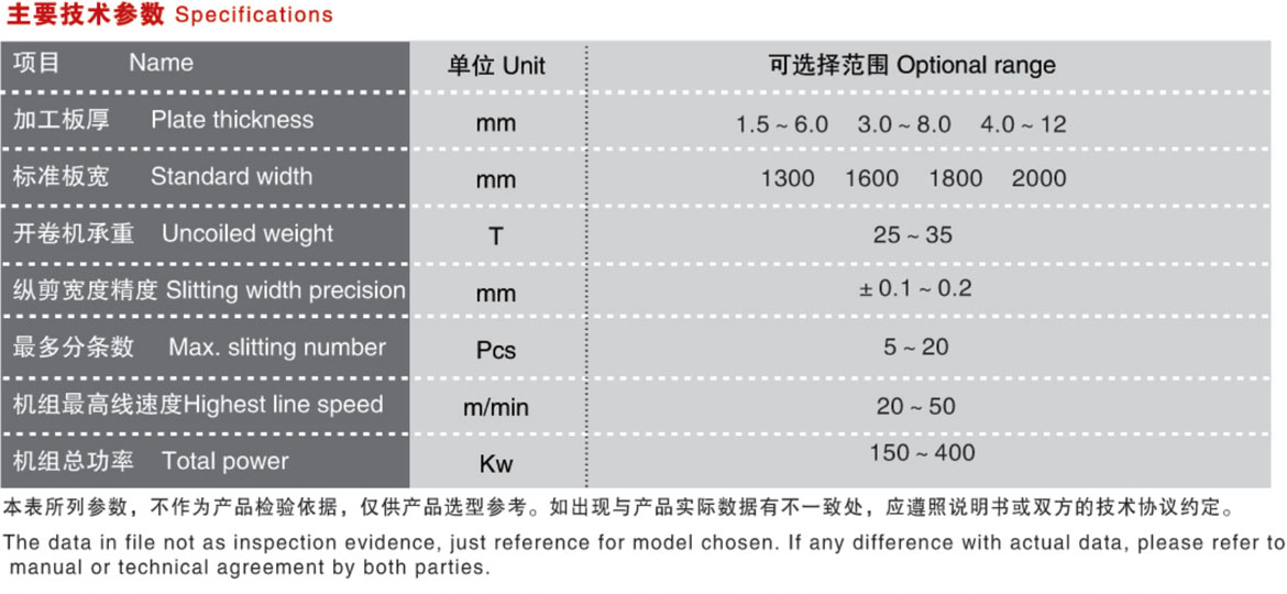 該生產線是將一定寬的金屬卷料中厚板寬方向縱剪成多條所需寬度的帶材并進行成品工件的卷取的成套設備。