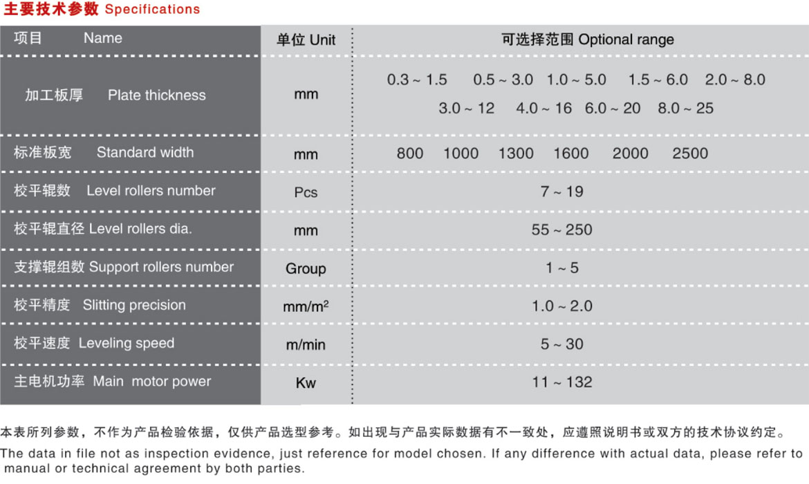 性能特點: 本機床為輥式金屬板料整平專用設備,通常由動力、主機和電器控制等部分組成。利用多輥工作原理,使板料在上、下校平輥之間反復變形,消除應力,達到校平的目的。在上、下排工作輥外側,設剛性支撐輥(輪),構成四重式組輥結構。板料通過本機校平,可明顯改善其平整狀態(tài),提高工件的質量。可獨立工作,用于單塊板材的校平;亦可在本機前配置開卷、引料,后面配置剪切、垛料及聯(lián)機機構等,通過控制系統(tǒng)連成性能完備的生產(chǎn)線,對金屬卷材進行整平、分切。